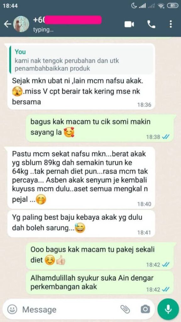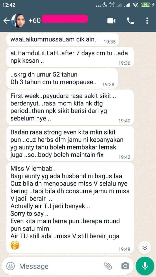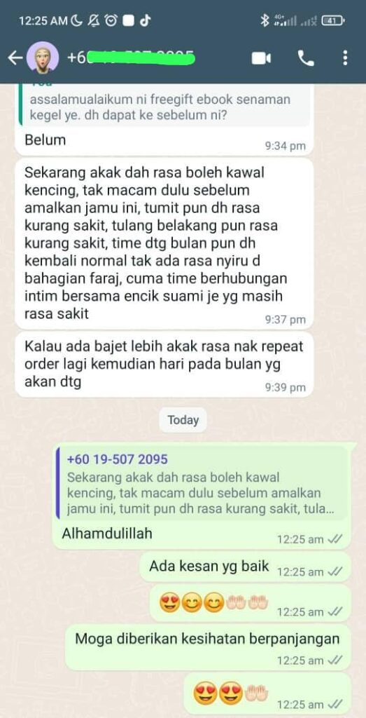 โdah boleh kawal kencing, sakit tumit dah berkurang’ย time datang bulan dh normal, takde nyiru pada faraj, nak repeat lagiโ