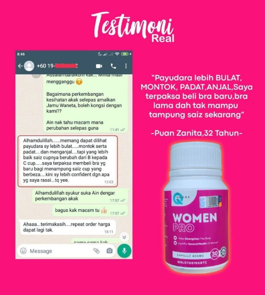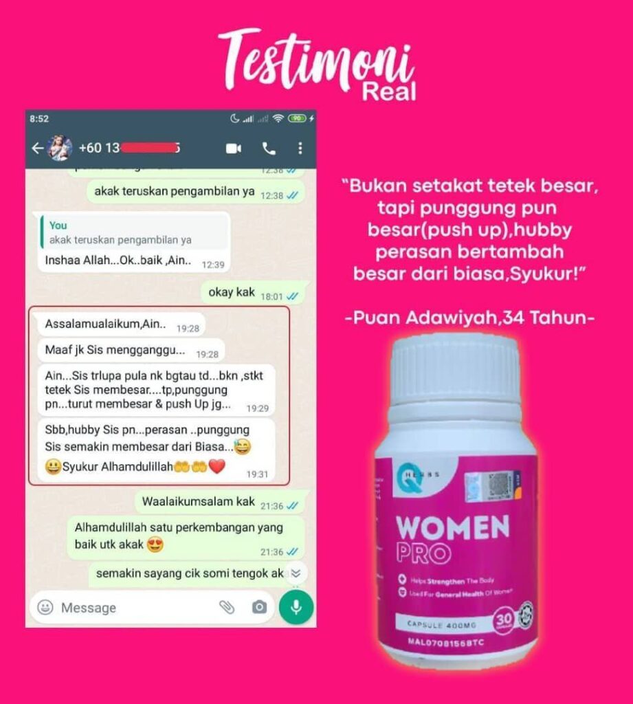 Harga Women Pro terlalu murah kalau nak dibandingkan dengan manfaat & perubahan yang sis akan alami nanti.